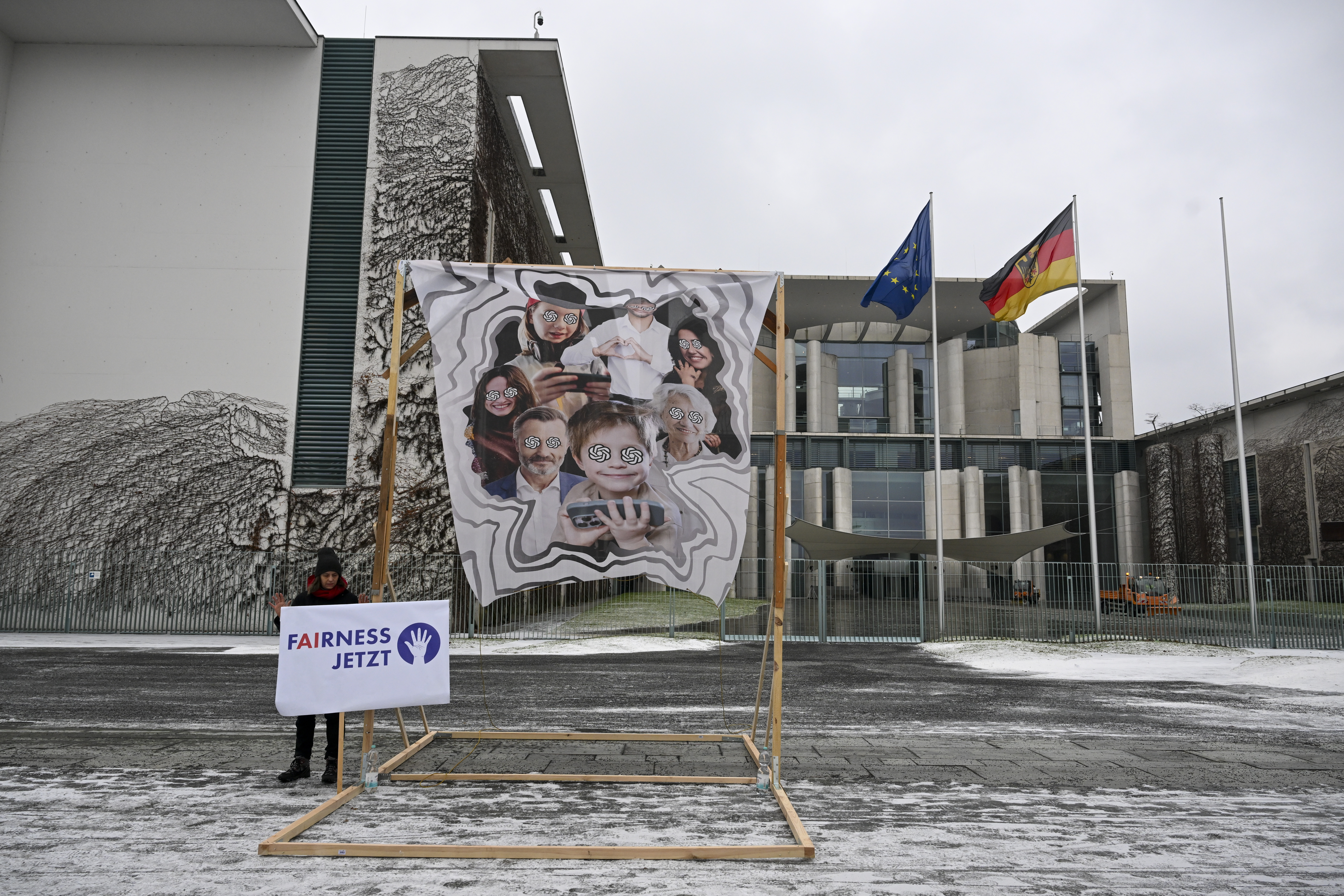 Almanya’nın başşehri Berlin’de Başbakanlık binası önünde toplanan Fairness Now (Şimdi Adalet) isimli küme, teknoloji şirketlerinin yapay zeka alanındaki süratli gelişmelerinin toplumsal riskler oluşturduğuna dikkati çekerek, yapay zekanın inançlı kullanımına yönelik tedbir alınması davetiyle protesto gösterisi düzenledi.(AA)