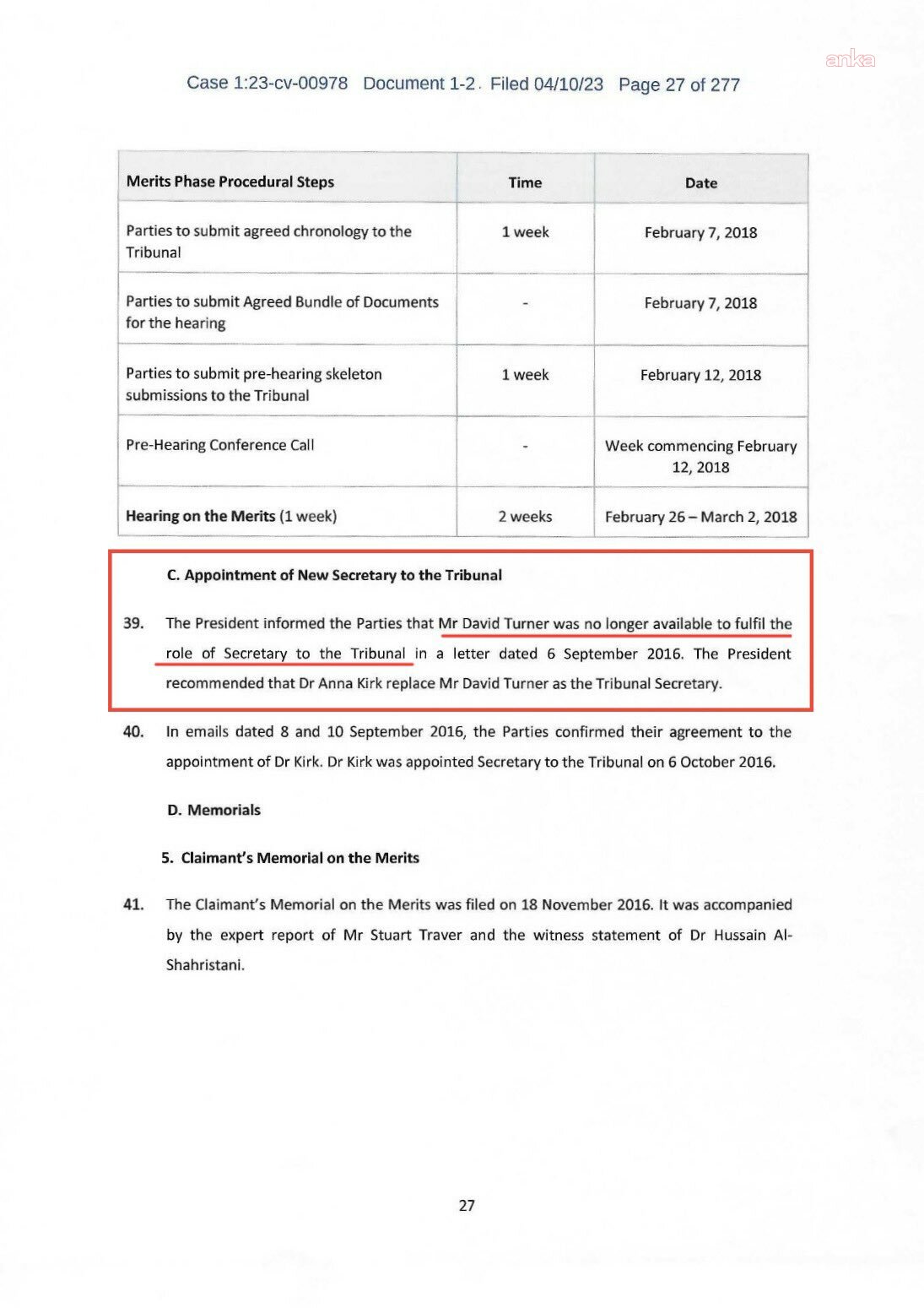 Davanın 13 Şubat 2023 tarihine kadar sonuçlanmadığını kaydeden Yavuzyılmaz, bu mühlet boyunca yöntemsiz petrol taşınmasının sürdüğünü ileri sürdü. Yavuzyılmaz, iki tahkim hakeminin birebir dava süreci içinde ani biçimde hayatını kaybetmesinin, memleketler arası tahkim topluluğunda “nadir görülen bir durum” olarak değerlendirildiğini ve hukuk literatüründe “trajik tesadüfler serisi” olarak isimlendirildiğini da belirtti. (ANKA)